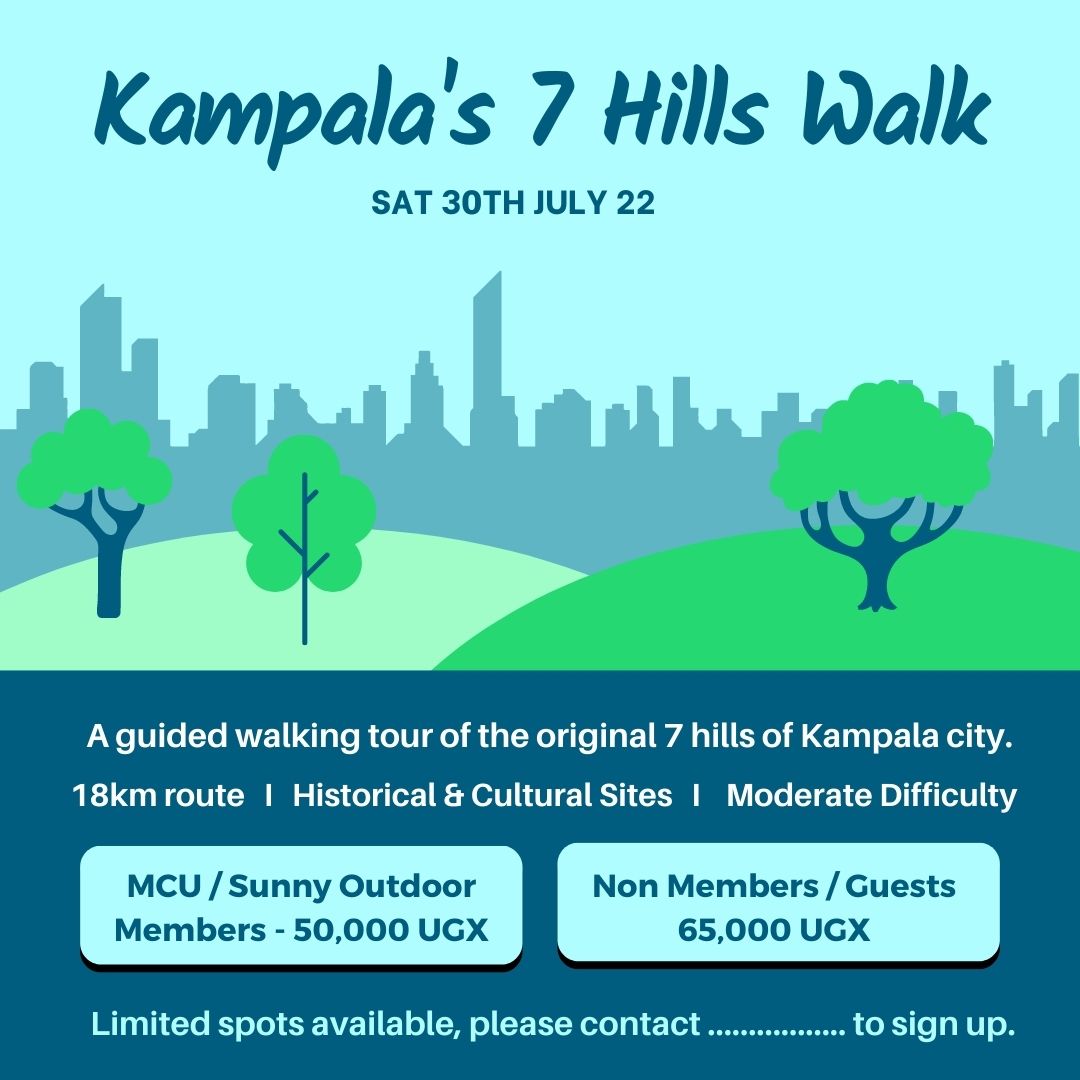 Together with our new partner Sunny Outdoors, we are organising a walk across all the seven hills in Kampala. A sign up sheet will be shared shortly in our Whatsapp Groups and Social Media channels.